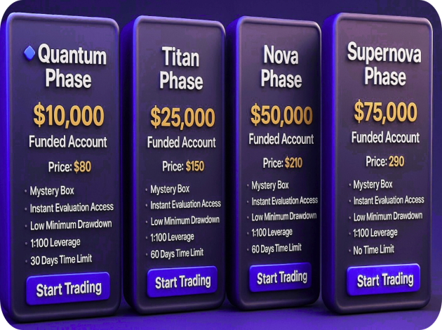 Pass the evaluation phase and receive a live funded account. Earn real profits and get up to 95% payout. Mystery Box rewards await top performers!
